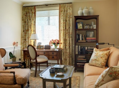 Важнейшей составляющей в классическом стиле является обилие тканей. Шторы из традиционных тканей богатых оттенков (дамаск, бархат, ситец) изящно драпируются и спускаются на пол. Рисунки, которые находят свое место в классическом пространстве, как правило также традиционны - это цветочные, клетка, полосы, даже гобелены.