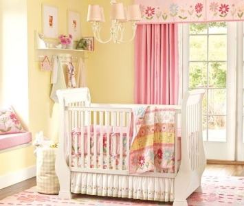 Еще один распространенный и гармоничный вариант – комната в пастельных тонах, в которой главным цветом является желтый. Такой вариант подойдет как для совсем маленькой, так и для подросшей девочки. Почти всегда в таком интерьере сочетаются пастельный лимонно-желтый, выступающий в роли цвета стен, кремово-розовый и травянисто-зеленый. Также иногда добавляется насыщенный солнечно-желтый, бледный серо-голубой или сиреневый. В таком интерьере большое внимание уделяются текстилю и его рисунку – тонким полоскам, клетке, горошку. Крупные элементы, например, мягкие пуфики, должны быть однотонными.